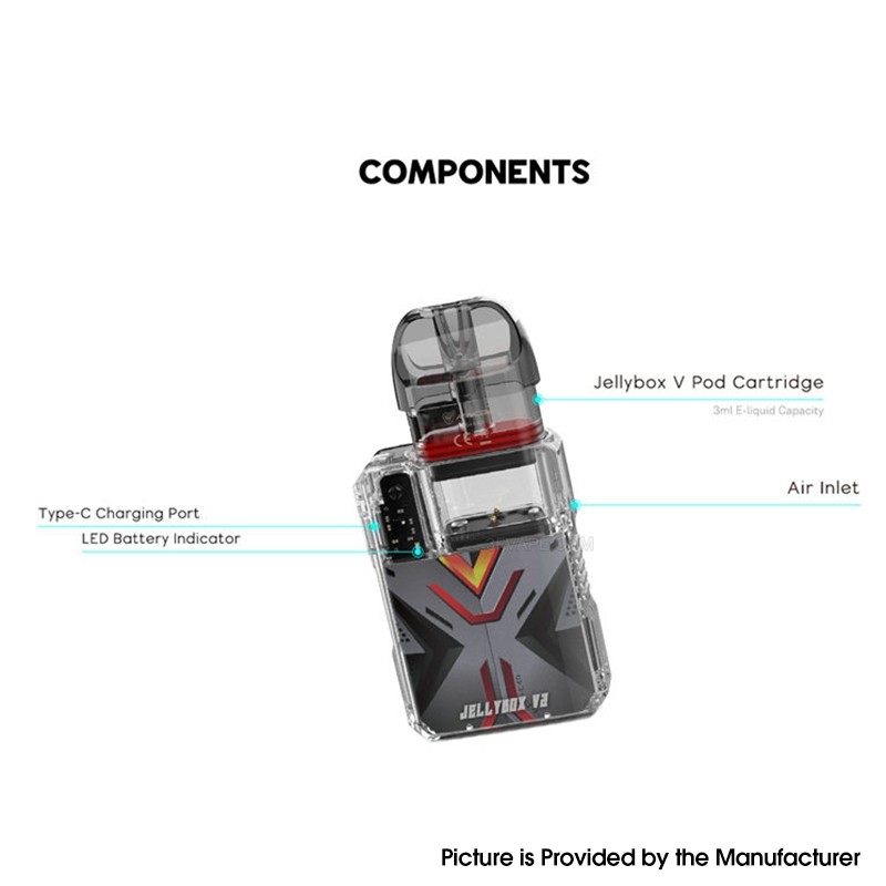 The Jellybox V Cartridge has a new leakproof design and longer coil lifespan, and the kit includes a fashion lanyard. Powered by an 850mAh built-in battery and upgraded MCU chip, the Jellybox V2 Kit offers an original and purer vaping experience.