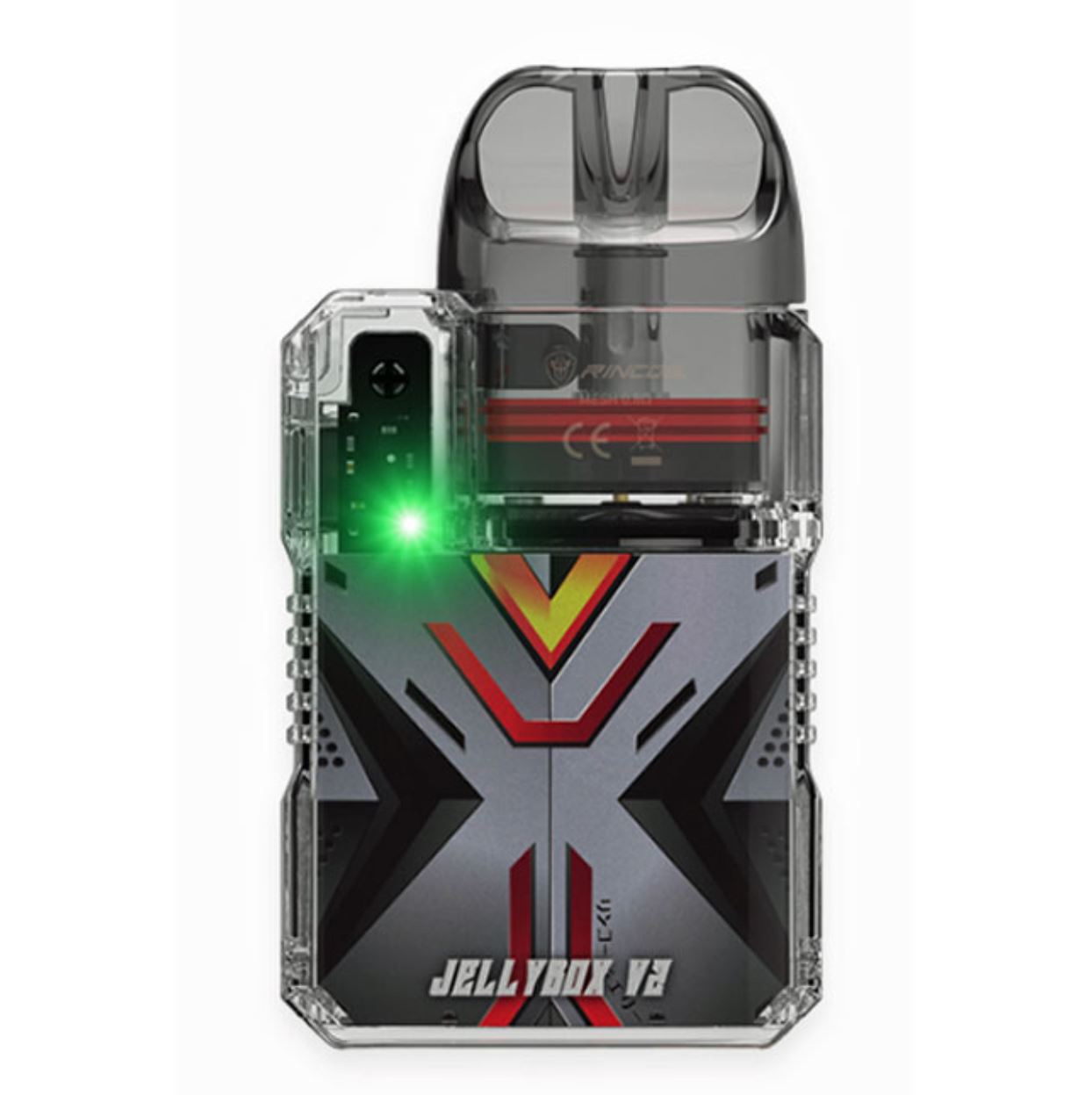 The Rincoe Jellybox V2 Kit is a lightweight and portable pod system with a transparent design. It features easy refillable pods with a 3ml capacity and intelligent coil detection for stable output. The kit is compatible with the brand-new Jellybox V Cartridge (0.8ohm & 1.0ohm) and is suitable for both beginners and MTL lovers.